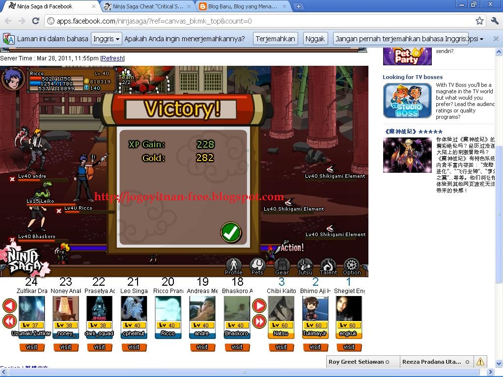 - Serangan yang terfokus pada satu musuh. Sesegera mungkin membunuh satu Shikigami, karena ketika melawan dua Shikigami, kita bisa lebih menghemat disabling jutsu (karena cooldownnya lama, lebih baik kalau selalu punya cadangan). Namun perlu diingat, segera bukan berarti terburu-buru. Selalu ingat untuk sebisa mungkin menjaga HP 8/10-nya karena ancaman serangan yang tinggi dari Shikigami Petir/Api.