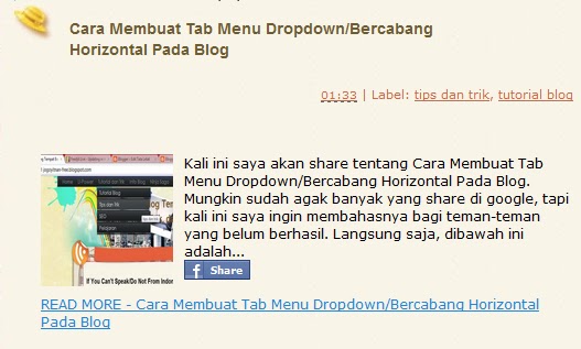 Oh iya, Auto Read More kali ini juga berbeda dengan Read More yang dulu. Cara kerjanya sudah otomatis(namanya saja Auto Readmore), tidak perlu menambah script pada setiap postingan, karekter yang ditampilkan bisa diatur, dan juga dapat menampilkan Image pula.